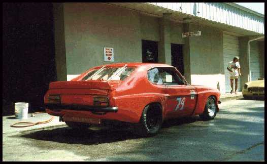 Mark purchased the car from Phase One Machine and Restorations in Virginia Beach, Virginia. They converted it from a SCCA ITA Capri 2800 to a GT2 machine. They made fender flares from molds they took from a set of flares that Mark had on another Capri. The engine in the car was damaged in a race at Summit Point, West Virginia over the Labor Day weekend in 1994. The current engine for it will have forged pistons and steel connecting rods that were designed/engineered by Sven Pruett. Mark's car has a f ull roll cage, fuel cell, twin fuel pumps, an Accusump oil system, vented fron brake discs. The rear wheels are 15" x 10" wide.