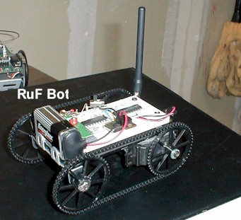 New developements. Ruf bot has a new addition to the joystick controller and has new interface software. The control joystick has a DB9 serial connector added to it so it may be controlled using hyperterminal or the VB app I wrote when connected to an IBM pc with a Windows OS. The joystick PIC basically shuts down when the DB9 connection is made. The comm port specs are preset in the VB app except for port selection but in hyperterminal they must be set in the initial connection screen. In this case 2400 baud, no parity, 8 data bits and one stop bit. The VB app can be downloaded here, and the screen shot is below.