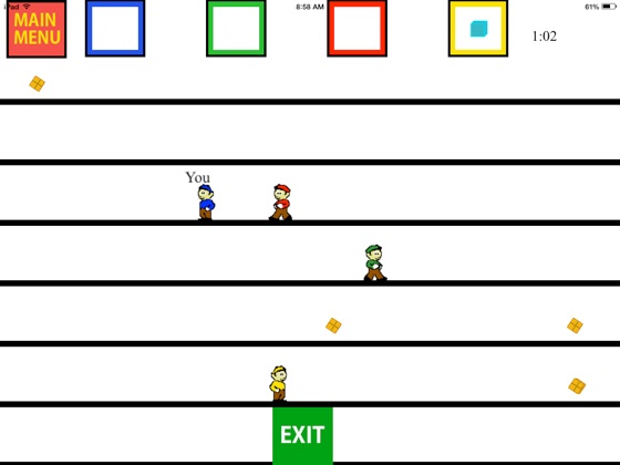 Below is a sample of a Single player game - in Single player you are the BLUE player. Notice how using the items picked up in the boxes aids in getting to the exit. This is a very early game and the bots (other players) AI (artificial intelligence) is not that high - they grow in AI every game.