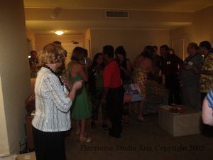 | Doug Berliner dropped by to say hi to Ellie Powell and Phil Hunsucker. |