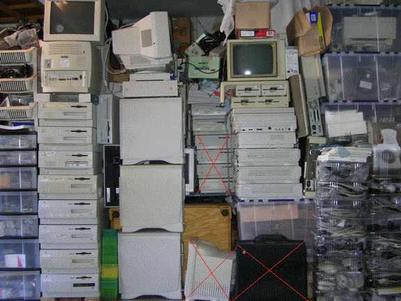 This is what we are trying to shrink. The stack of Macs and other bits of related hardware are taking over our garage. If you have a need or desire for something related to older Macs, please drop us a message!
