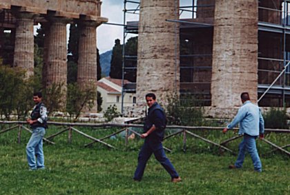 A magnificent temple of Hera. My bro can be seen by the bottom-left corner, helping to portray the size of the ancient structure. |