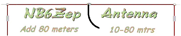 Recently I was pleasantly surprised to find that all of my favorite digi modes were still alive and active at night after the 20 meter band has closed. Listening around 3580 Khz I could hear PSK31, MFSK16 and Feld Hell modes all nicely spaced and operating together at the same time. The regular RTTY and ARQ modes were also heard up higher around 3620 Khz. Realizing that I had to join the fun, but knowing it would be bad practice to load my NB6Zep on the 80 meter band, I started to model ideas to modify the NB6Zep. My goal was not to create a DX antenna for this band, but one that takes advantage of the short skip properties of the 80 meter band. Realizing that almost all antennas on 80 meters are a compromise... The main short coming of the NB6Zep for this band is the lack of a half wave (or greater) resonance on 80 meters. Adding inductance is the way to lower the resonance of the wire for 80 meters. All center-fed wire antennas are balanced, and so inductance must be added equally to both halves of the antenna. End loading a wire is the most efficient way to do this. By placing the 80 meter loading coil further down each leg, efficiency on 80 meters is increased. The required larger inductor will in turn act as a choke to restore the NB6Zep to it's original characteristics for 40-10 meter operation. See the NB6Zep Antenna for details of the basic antenna. Since adding inductance to each leg was required, adding an additional 3 feet of wire on each end of the original dimensions restored the NB6Zep to a full sized 20 meter EDZep. A large inductor is placed at the end of the additional 3 feet of wire on each end of the NB6Zep and then a 17 foot length of wire is added to complete the circuit on each end. The overall wire is now approximately an electrical half wave on 3500 Khz. The over all increase in each leg is approximately 21 feet (3' plus 17' plus the length of the coil) and this section should be dropped down vertically (or close to a 90 degree angle) from the horizontal length of the wire. Basic Construction: I used a B&W coil stock 3026 (10" of 2" diameter air wound stock with 8 turns/inch). I carefully cut it into 2 equal halves of 40 turns each. I added strain relief inside each coil and soldered the extra length of wires (17' & 3') to the strain relief. CLICK for DETAIL I attached the short wire of each 80 meter extensions to each end of the original NB6Zep. I tied off the vertical legs of the NB6Zep to nearby fences using a length of nylon twine. You may make your own coils and still get good results! The inductance you are looking for is approximately 27.5 uH or about 700 ohms of reactance at 80 meters. Look in the hand books for construction methods and dimensions that will work for you. (2" OD PVC pipe is one idea that comes to mind.) Make sure you do a good job to make both coils exactly the same and add strain relief for the windings. The exact value of the coil is not as critical as the matched value of the coils. To reduce any RFI in the ham shack, I added a "coax choke" (purchased from Radio Works) to the unbalanced side of my 4:1 balun. CLICK for DETAIL This is not strictly necessary, but is good practice for keeping TNCs and PC speaker from acting up. You may also make your own chokes with toroid cores as described in the hand books. Add them at either or both ends of your coax to counter the effects of any imbalance in your antenna. Basic Performance: The added loading coils will increase inductance for smoother tuner operation on the 80 meter band. Over all 80 meter performance will be similar to that of a half wave dipole. I have enjoyed 80 meter contacts on MFSK16 to many east coast stations in the two weeks since completing the modification. The loading coils will act as an RF choke to isolate the modifications from the rest of the antenna for 40-10 meter operation. Performance on these bands will be as described for the original NB6Zep with the exception of 10 meters. On the 10 meter band, the additional wire that was added above the coil (choke) will have a significant impact on the 10 meter pattern. The effect is 8 equal lobes in all directions. Each lobe has unity gain at a very low angle. The results for me has been good DX operation in all directions.