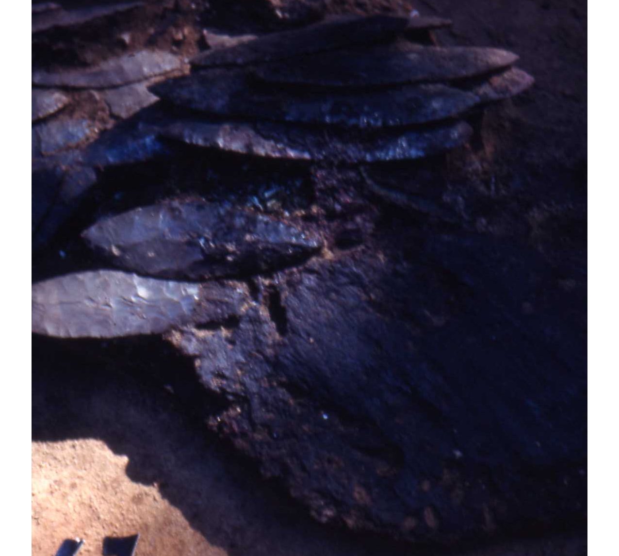 The burial site is a natural rise of land consisting of sand . The soil type allowed the use of a,sand saw to clear sand for the deck boards to be pushed and jacked under the burial. I made a sand saw using a piece of wood and putting nails in it to make teeth to cut into the sand. An auto jack was required to push the boards in place when resistance and weight made it difficult for crew members to push the boards. Under the edges of the deck 2x4 members were placed and deck members nailed to the 2x4’s. Next 8p nails were nailed around the perimeter of the plaster cover over the burial seal the edges of the plaster cover. The plaster cover was made with newspaper first laid over the burial then a coat of plaster,chicken wire,palster,binder twine,plaster,binder twine. The multiple layers were laid until the crew felt there was sufficient thickness to protect the burial. The museum technicians mentioned that the chicken wire caused difficulty and that the binder twine was sufficient.
