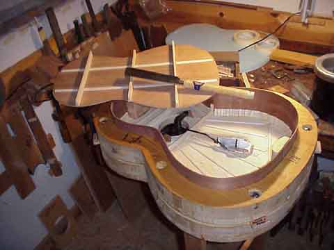 IMPORTANT cut and fit back braces before installing liners,mark the brace ends on the sides of the guitar,for ease in fitting the back.