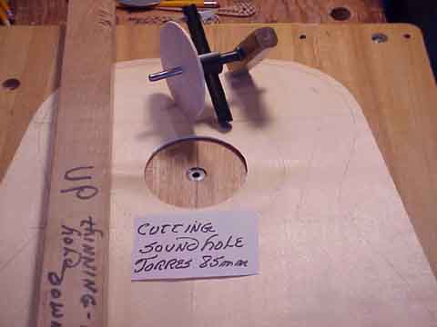 Cutting the sound holes other half from the back side will eliminate tear outs in the wood.