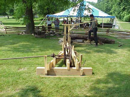 The function of the drag saw is as follows, the horses rotate a large round horizontal gear which powers a small gear that rotates a drive_shaft,which rotates a pitman that moves the beam which has the saw attached at the end opposite the pitman. The carriage that the log is placed upon and chained to, can be advanced to feed the log towards the saw. Study the images and the process will be easily under stood. The method of the function of this type of saw has its origin in Europe and have great antiquity. For some reading about old technology I recommend you read -DE REY METALLICA by Georgius Agricola, 1556, translated by Hoover and Hoover and reprinted by Dover Publications of New York,U.S.A. and The two volume series -A Diderot Pictorial Encyclopedia of Trades and Industry by Dennis Diderot ,1751,52, reprinted by Dover Publications of New York, U.S.A.
