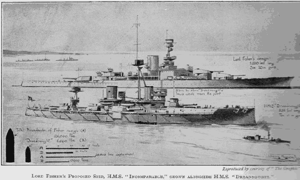 The Incomparable design process started around 1912. 4 Fisher (pg 190) refers to a "descriptive outline set forth in the early morning of September 17th 1912". It is interesting to note that Fisher was retired from the Royal Navy at that point, so the design was certainly unofficial.