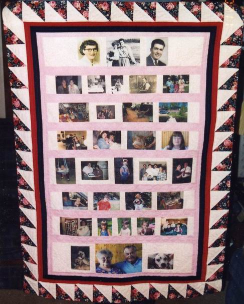 to cloth, which I quilted into the quilt top. The pictures were "stitched