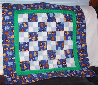 QUILT - This baby quilt was made for my grandson. The print is of zoo animals,