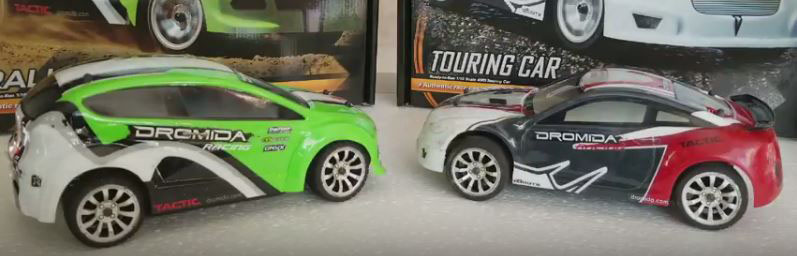 A 1/18 scale 4WD Dromida Rally Car (brushed motor drivetrain)