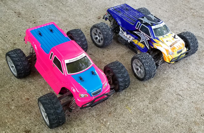 Two 1/18 scale 4WD Dromida MT4.18 Monster Trucks (brushed motor drivetrain)