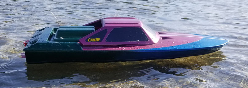 The "Candy" was the first R/C boat I ever received. It was an 8th grade graduation gift back in 1987. It came with a Futaba pistol grip AM transmitter. I even built a trailer for it so I could tow it around with my Tamiya Falcon. The Falcon is long gone but the trailer is still around. There's even recent video with my kid's R/C truck towing it to the lake!