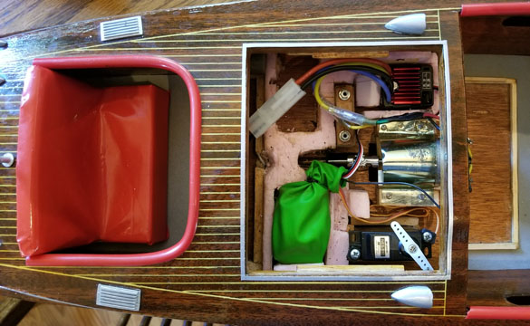 Here is the link to the upgrade video. It will open in a new window: Sterling Models 1/8 scale Racing Runabout gets an ESC and passengers