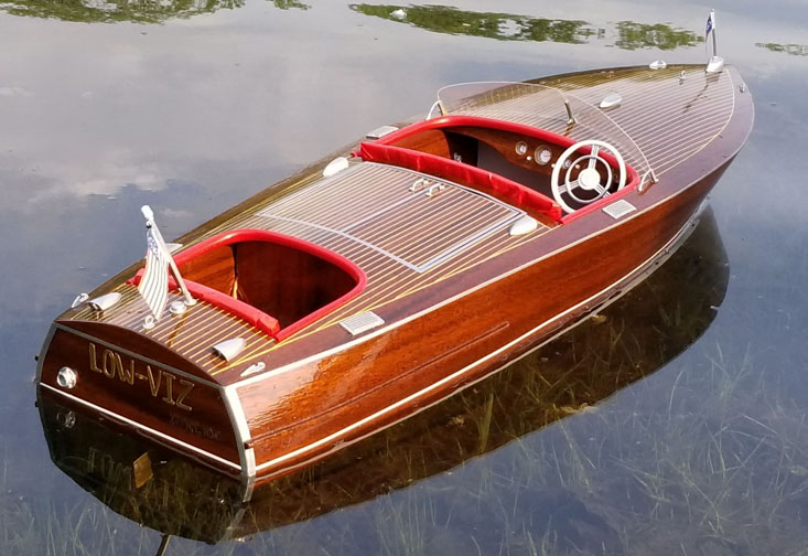 This is the 29" long, approximately 1/8 scale, Sterling Models Dual-Cockpit Mahogany Runabout.