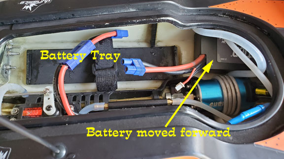 down on the stinger and the battery moved forward to shift the CoG toward the bow.