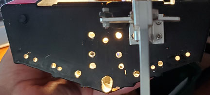 3) trim tabs being moved (4 holes on each side); 4) turn fins being installed (2 holes each side) and