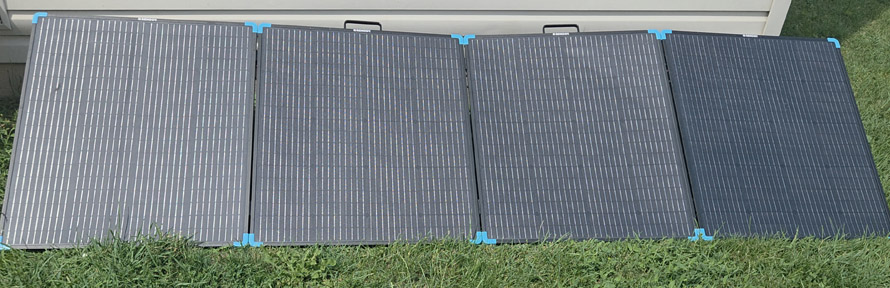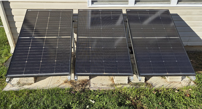 At the same time, we purchased the 3 BougeRV solar panels, pictured below and mentioned above in "Step 2" and mounted them on adjustable-angle ground mounts in the backyard. We also wired it so we could setup and plug in the Renogy Solar Suitcase also mentioned in "Step 2" above. This allows up to 1000W of solar charging for the home battery backup system. It's not enough to go off-grid but it's something!