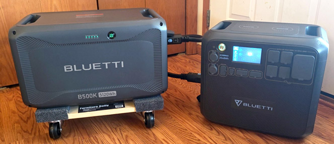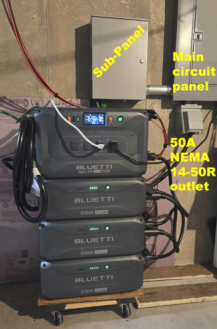 This setup got us, on paper, 11.1kWh of battery (3 B300k batteries at 2764.8Wh each plus the Apex 300 has a built-in battery at 2764.8Wh). Assume 80% efficiency, which is a little low I think, and you get about 8.8kWh of usable battery backup. By trading in the AC500, I got essentially one additional battery plus the inverter plus 240V split-phase, so it was a perfect upgrade ... with some caveats, but it works perfectly in my application!