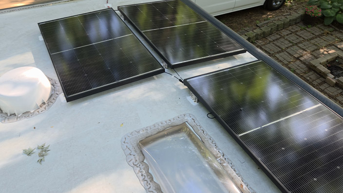 For our 2025 trip, I installed 3 BougeRV N-Type 24V, 200 Watt Bifacial 16BB Solar Panels on the roof and wired them in series. The AC200MAX can take 12-145 volts DC up to 15 amps of solar input.