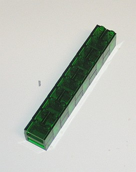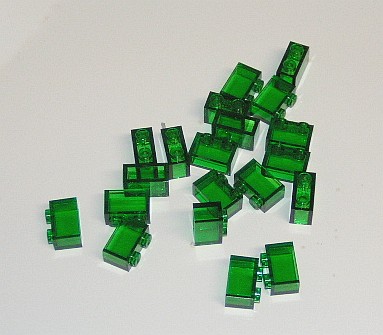 When I send an order, I will stack the parts before I pack them. For example, if you order 20 trans-green 1X2 bricks, they will be packed like this: