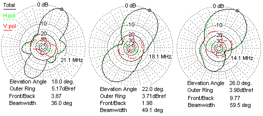 The performance so far has been exactly as predicted. (Modeled gain is based on a dipole at 1/2 wave above ground.) Switching from the NB6Zep to the Super Zep antenna is like turning on a light switch when it comes to signals from Europe on 15 and 20 meters! Contacts to W2 land from Oregon have been more difficult since replacing the wider beamed yagi wire. However, the DX signals over the pole are easy to find through the East Coast QRM. This is a good indication that the design is working as planned. There was no RFI detected in the shack by the slight imbalance in the feed line. I believe I now have achieved the ultimate gain antenna to Europe for my situation (until that urge to cut wire hits me again)...